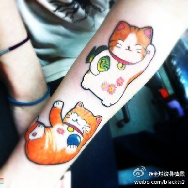 女生手臂可爱的猫咪纹身图案_女生纹身图案大全_纹身图吧
