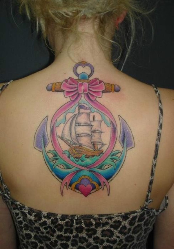 女生后背好看的船锚纹身图案_女生纹身图案大全_纹身图吧