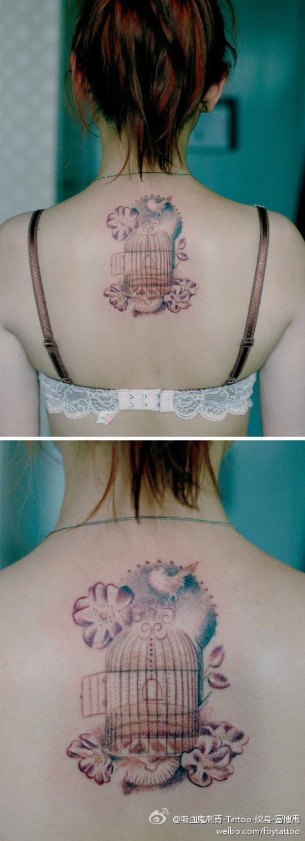 女生后背好看的小鸟与鸟笼纹身图案_女生纹身图案大全_纹身图吧