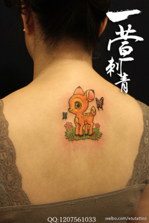 女生背部可爱的小梅花鹿纹身图案_女生纹身图案大全_纹身图吧