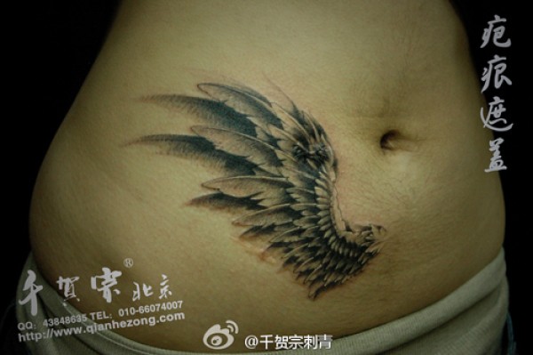 女生腹部疤痕遮盖翅膀纹身图案_女生纹身图案大全_纹身图吧