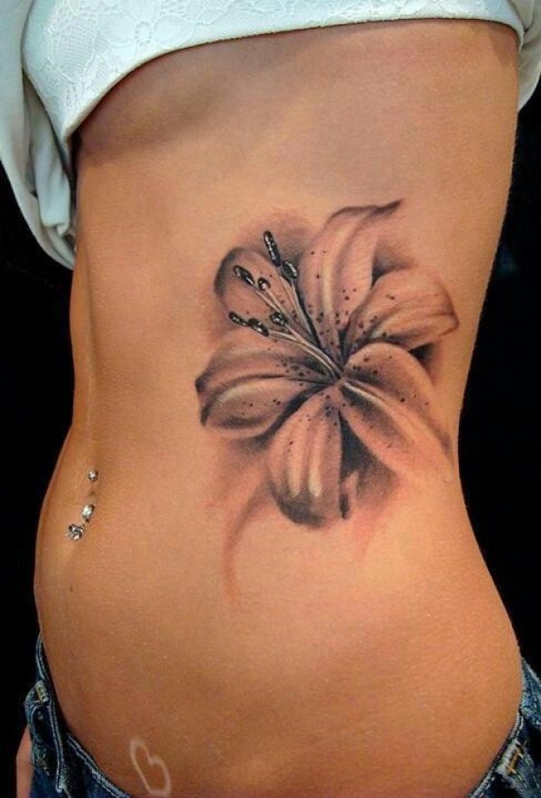 女生腰部好看的黑白百合花纹身图案_女生纹身图案大全_纹身图吧
