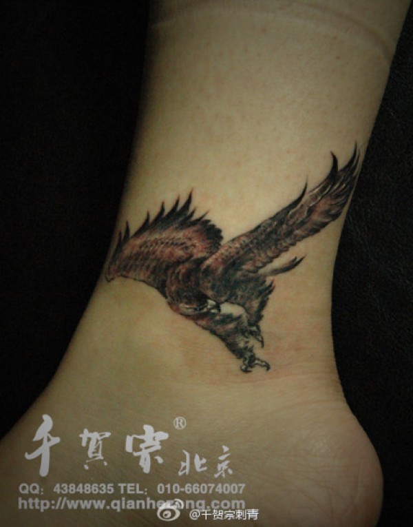 女生脚腕处简单的黑白老鹰纹身图案_女生纹身图案大全_纹身图吧