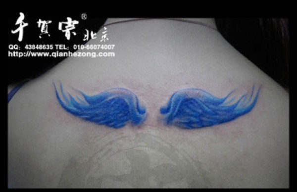 女生背部唯美好看的彩色小翅膀纹身图案_女生纹身图案大全_纹身图吧