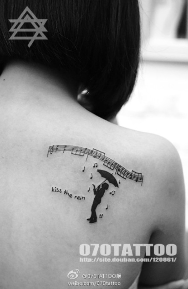 女生肩背唯美流行的音符纹身图案_女生纹身图案大全_纹身图吧
