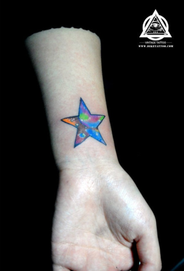 女生手臂唯美好看的星空五角星纹身图案_女生纹身图案大全_纹身图吧