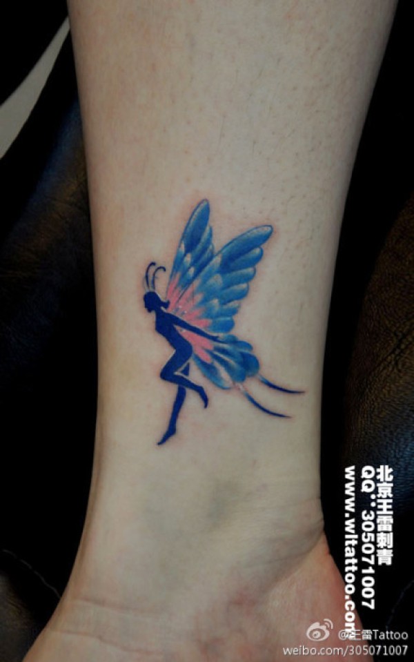 女生腿部漂亮的彩色精灵纹身图案_女生纹身图案大全_纹身图吧