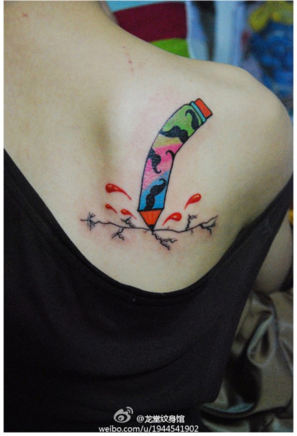 女生肩背一款彩色铅笔纹身图案_女生纹身图案大全_纹身图吧