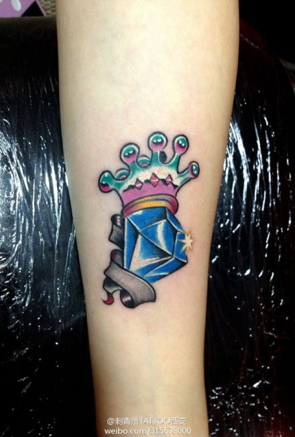 女生手臂漂亮的钻石与皇冠纹身图案_女生纹身图案大全_纹身图吧