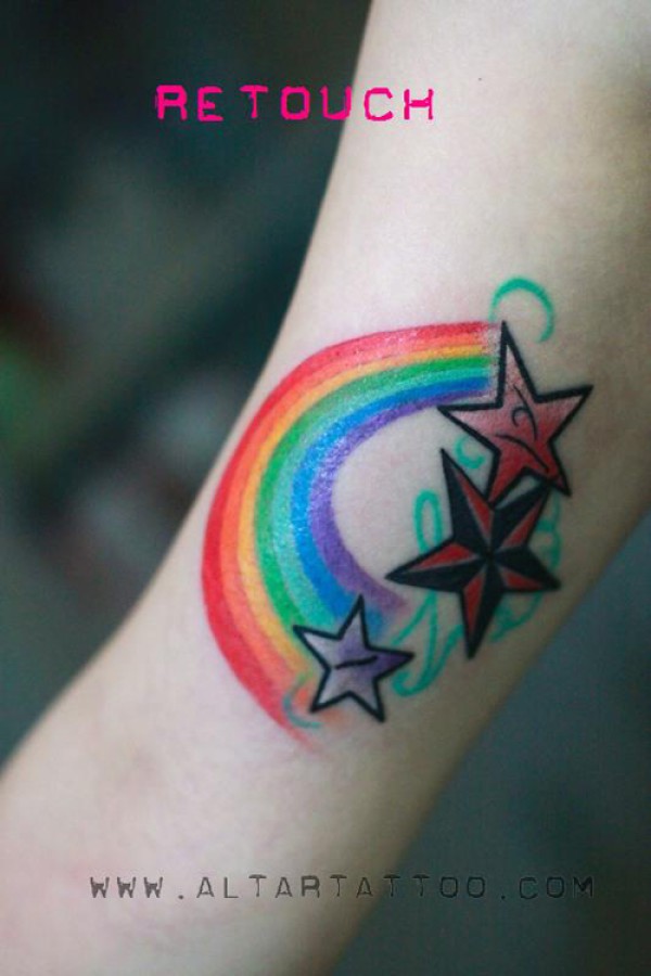 女生手臂漂亮好看的彩虹五角星纹身图案_女生纹身图案大全_纹身图吧