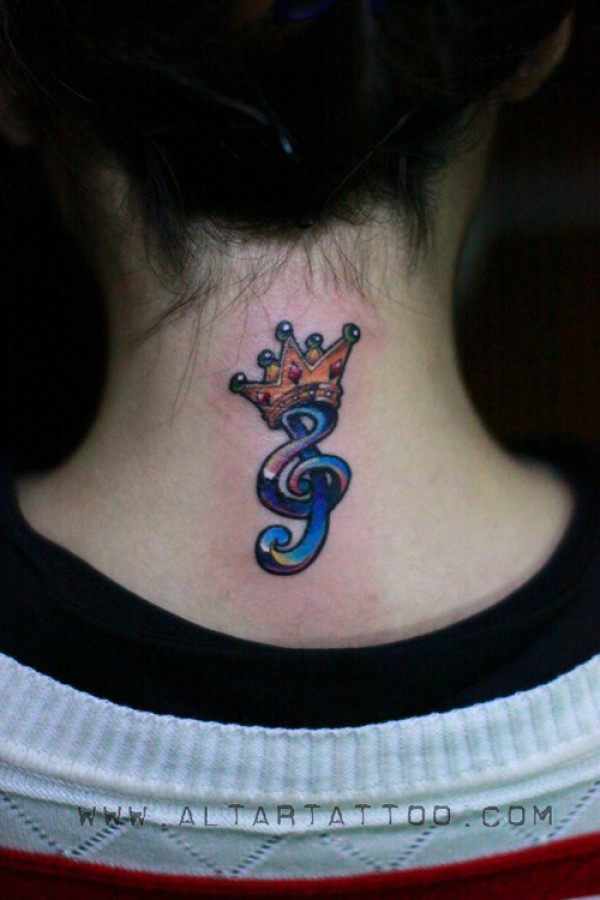 女生颈部小巧的音符与皇冠纹身图案_女生纹身图案大全_纹身图吧