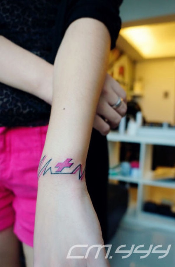 女生手腕处心电图手链纹身图案_女生纹身图案大全_纹身图吧