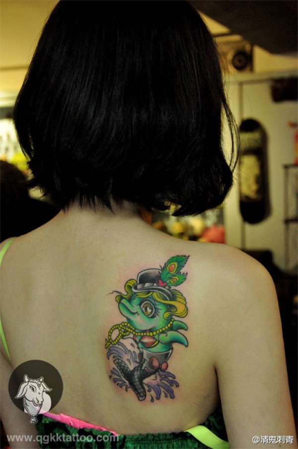 女生肩背可爱的小海豚纹身图案_女生纹身图案大全_纹身图吧