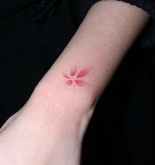女生手臂彩色小樱花纹身图案_女生纹身图案大全_纹身图吧