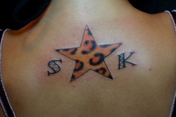 女生背部一款豹纹五角星纹身图案_女生纹身图案大全_纹身图吧