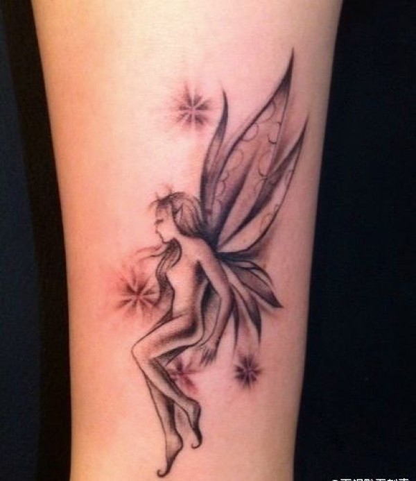 女生腿部黑白精灵纹身图案_女生纹身图案大全_纹身图吧