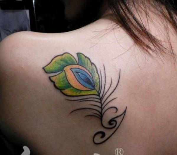 女生肩背精美好看的羽毛纹身图案_女生纹身图案大全_纹身图吧