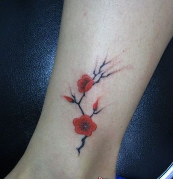 女生腿部简单好看的梅花纹身图案_女生纹身图案大全_纹身图吧