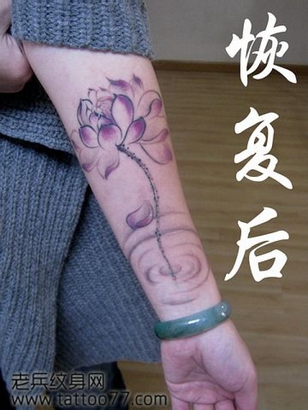 女生手臂恢复后水墨画莲花纹身图案_女生纹身图案大全_纹身图吧