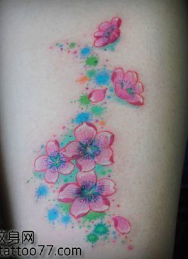 女生腿部樱花加滴墨效果纹身图案_女生纹身图案大全_纹身图吧