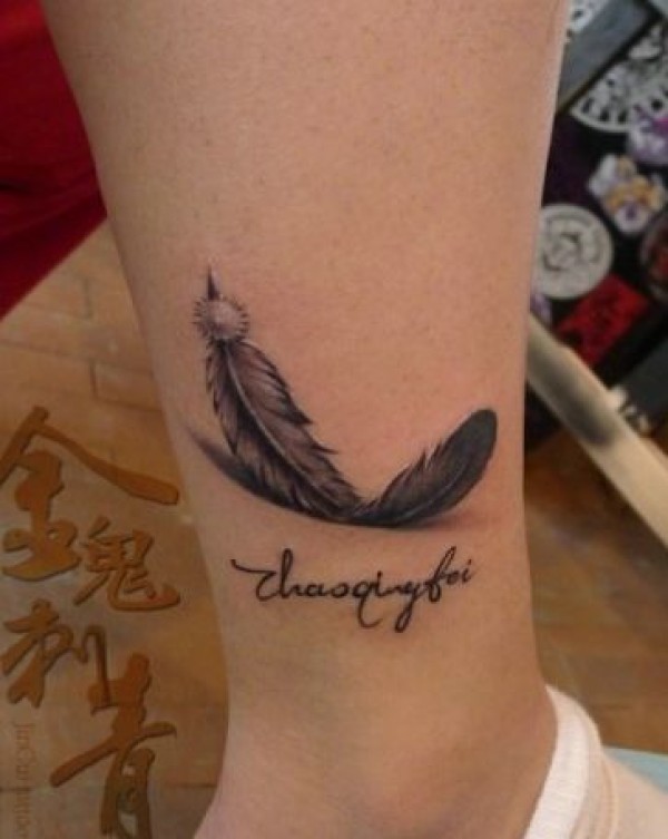 女生腿部写实的羽毛纹身图案_女生纹身图案大全_纹身图吧