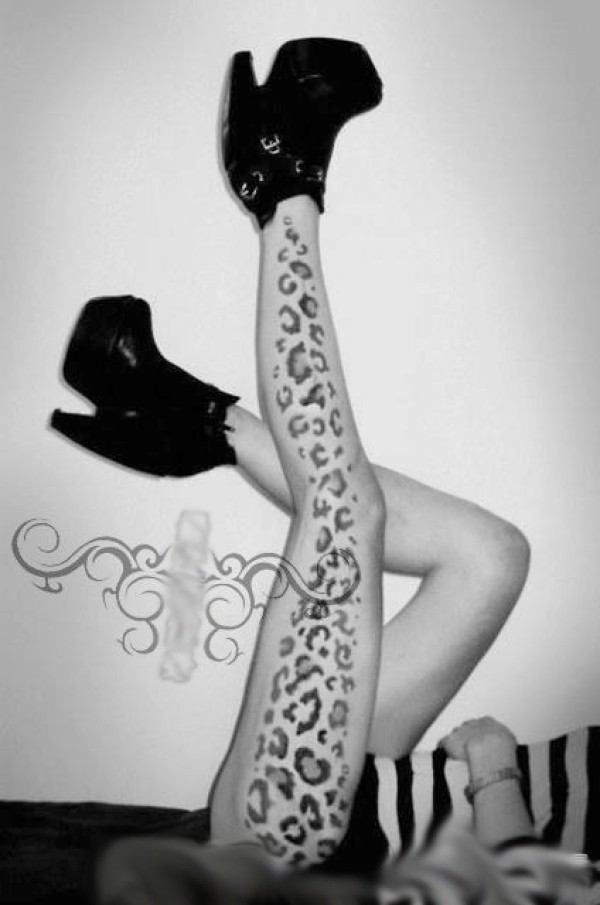 帅气的女生腿部豹纹纹身图案_女生纹身图案大全_纹身图吧