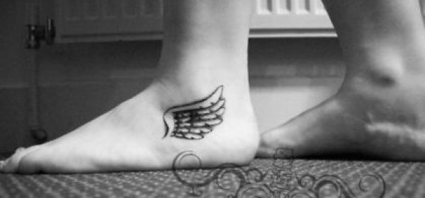 女生脚踝处简约的翅膀纹身图案_女生纹身图案大全_纹身图吧