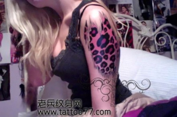 女生手臂一款彩色豹纹纹身图案_女生纹身图案大全_纹身图吧