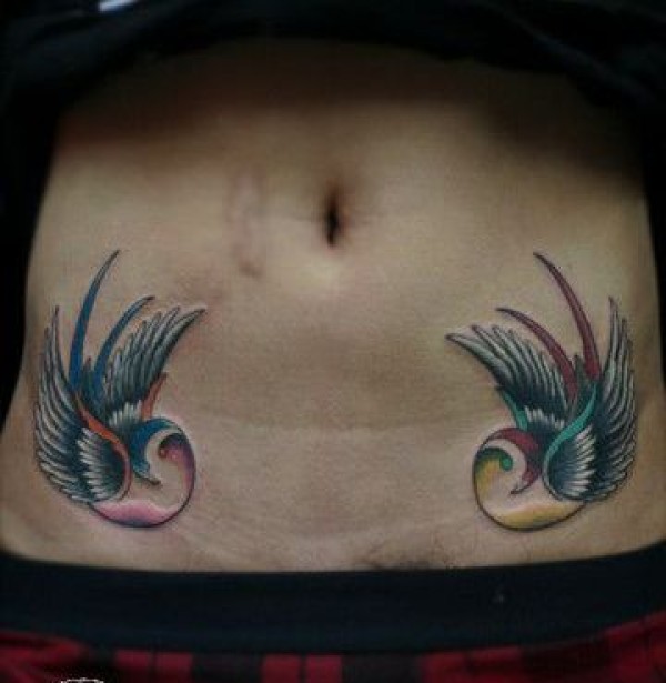 女生腹部欧美风格小燕子纹身图案_女生纹身图案大全_纹身图吧