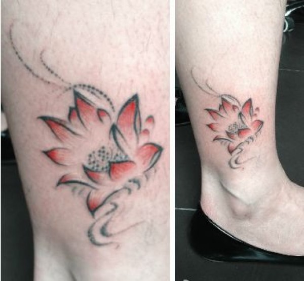 女生腿部时尚流行的水墨风格莲花纹身图案_女生纹身图案大全_纹身图吧