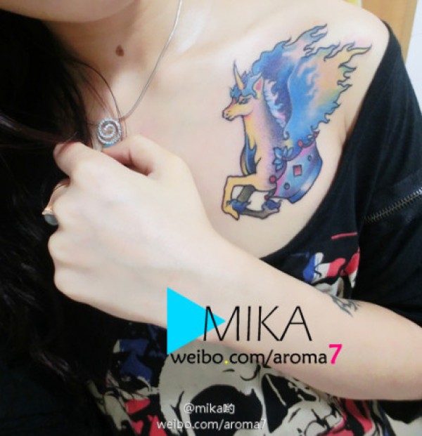 女生胸部一款时尚精美的独角兽纹身图案_女生纹身图案大全_纹身图吧