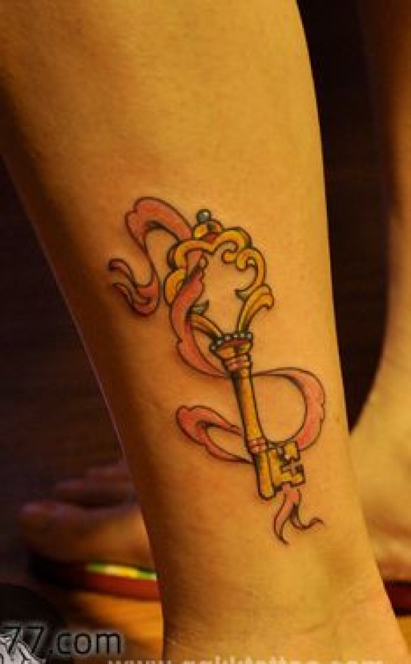 女生腿部一款流行的钥匙纹身图案_女生纹身图案大全_纹身图吧