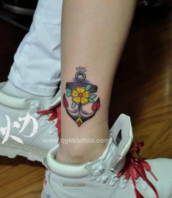 女生腿部精美的小船锚纹身图案_女生纹身图案大全_纹身图吧