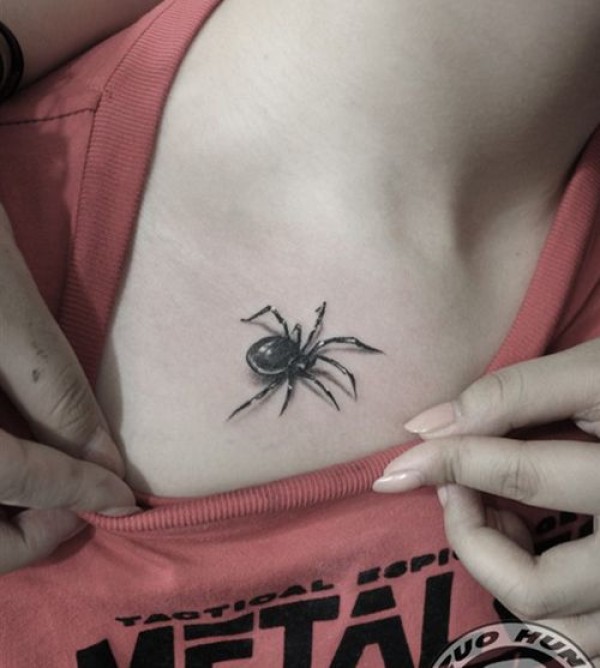 女生胸部小巧经典的蜘蛛纹身图案_女生纹身图案大全_纹身图吧