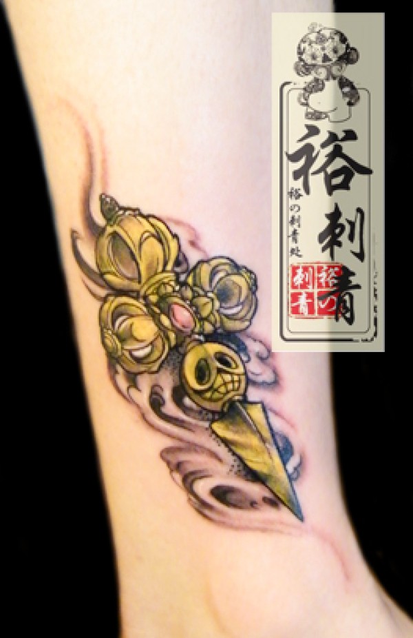 一款女生腿部金刚杵纹身图案_女生纹身图案大全_纹身图吧