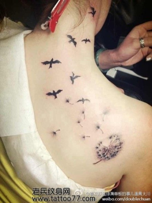 女生喜欢的蒲公英鸽子纹身图案_女生纹身图案大全_纹身图吧