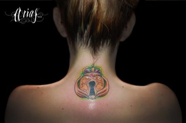 美女后颈部锁皇冠(crown)纹身图案图片_女生纹身图案大全_纹身图吧