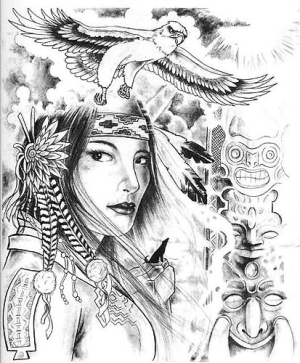 美女与老鹰纹身图案_女生纹身图案大全_纹身图吧