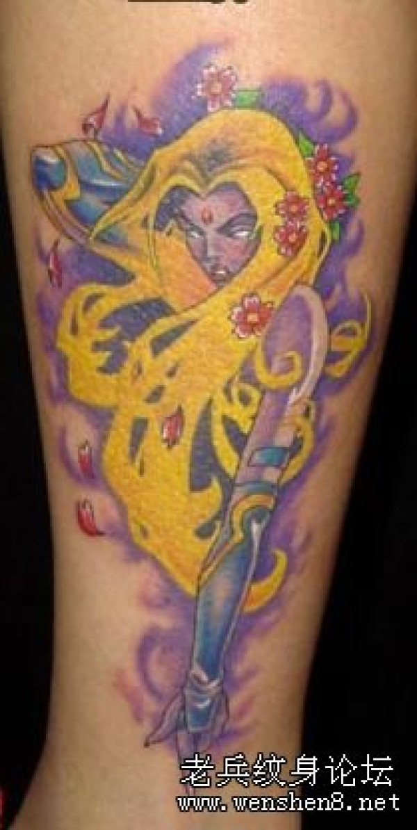 彩色半胛美女纹身_女生纹身图案大全_纹身图吧