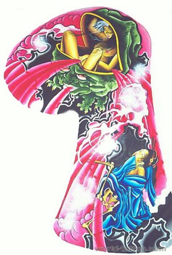 彩色半胛美女纹身_女生纹身图案大全_纹身图吧