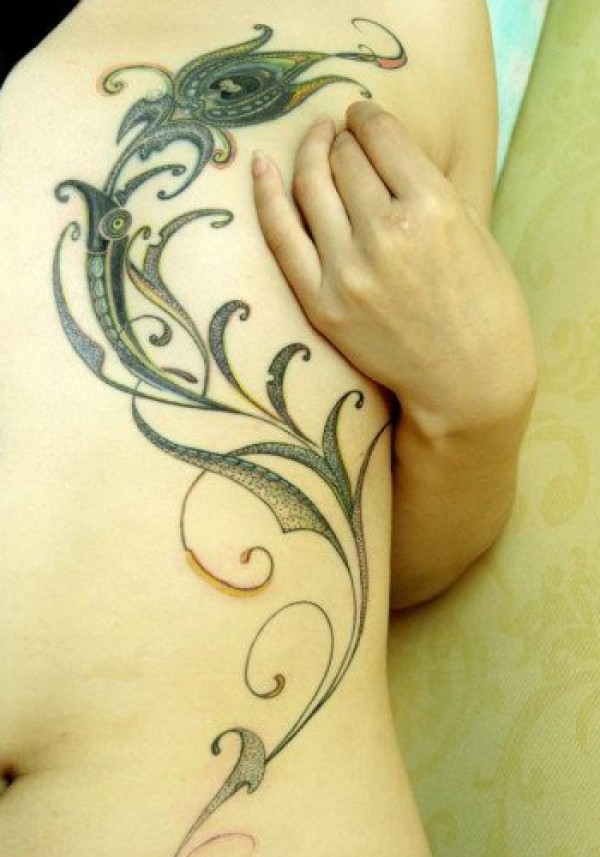 彩色半胛美女纹身_女生纹身图案大全_纹身图吧