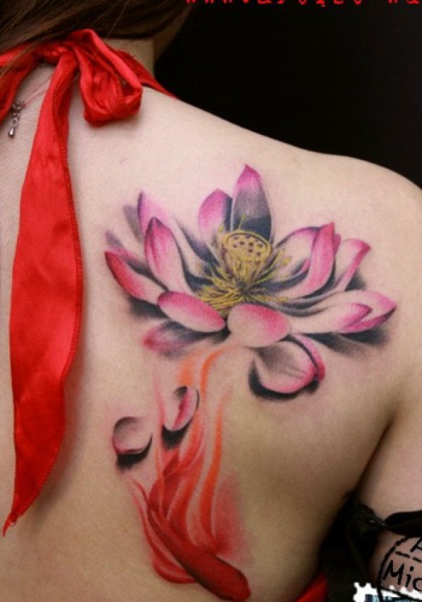 女生后肩背莲花纹身_女生纹身图案大全_纹身图吧