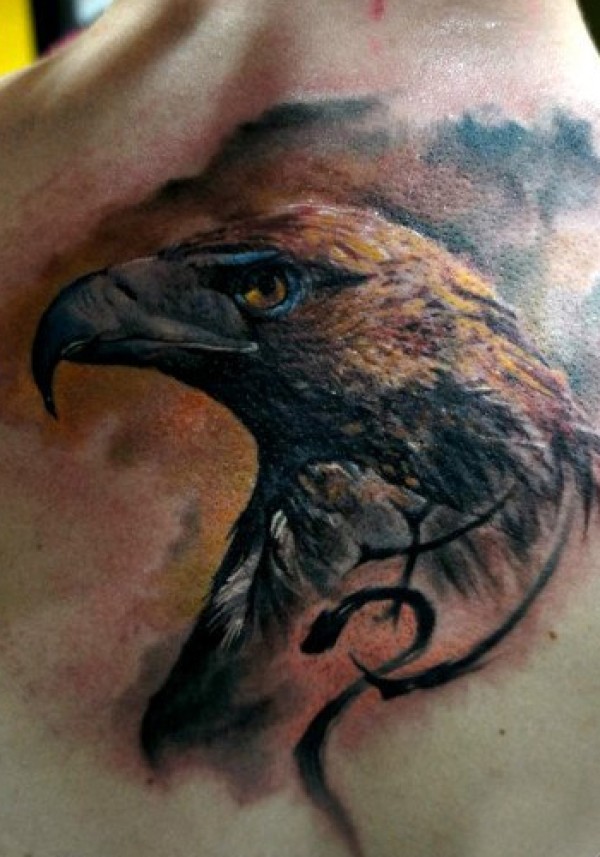 女生后肩背老鹰纹身_女生纹身图案大全_纹身图吧