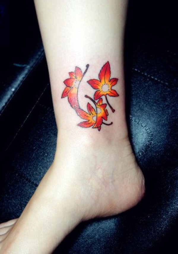 女生脚踝处小巧的彩色枫叶纹身_女生纹身图案大全_纹身图吧