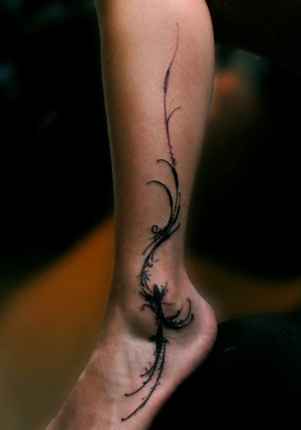 女生脚踝处精美的藤蔓纹身_女生纹身图案大全_纹身图吧