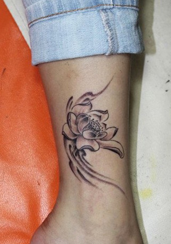 女生腿部时尚莲花纹身_女生纹身图案大全_纹身图吧