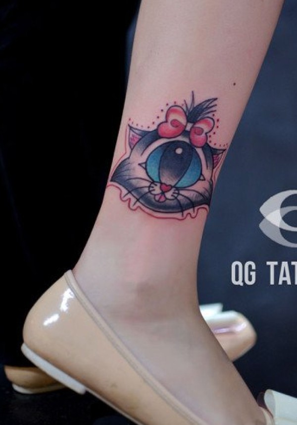 女生腿部小巧独眼猫咪纹身_女生纹身图案大全_纹身图吧