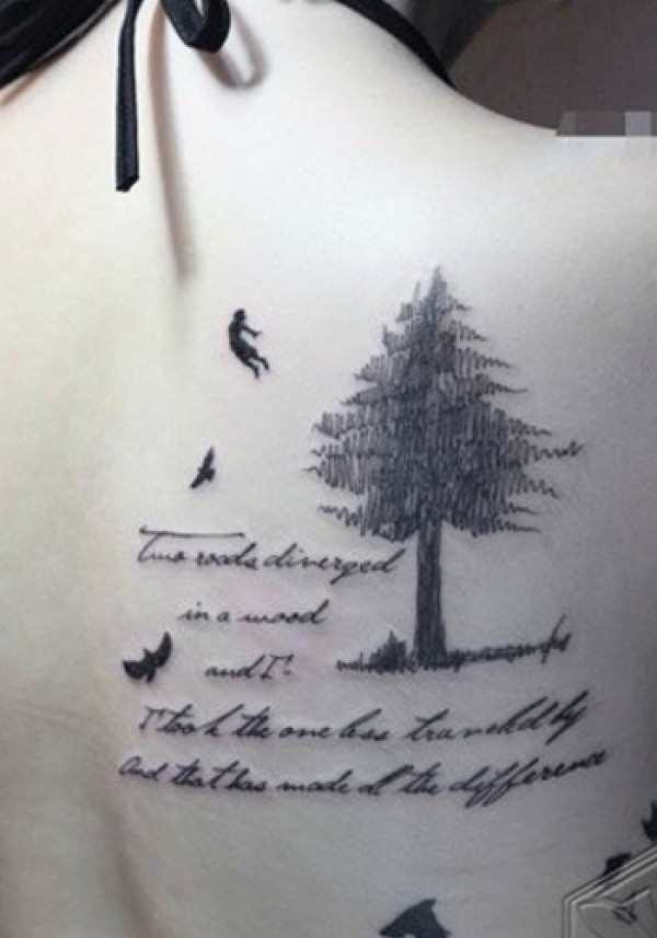 女生背部小树与小鸟纹身_女生纹身图案大全_纹身图吧