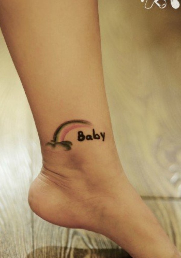 女生脚踝处小巧的彩虹纹身_女生纹身图案大全_纹身图吧