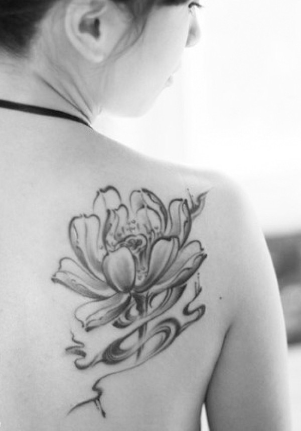 女生肩背唯美的写意莲花纹身_女生纹身图案大全_纹身图吧